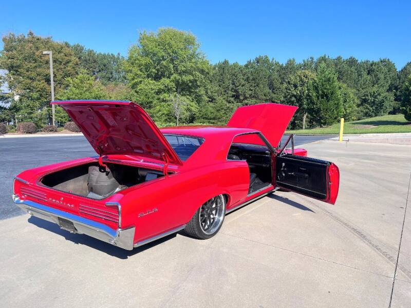 Gateway Classic Cars of Atlanta is proud to present this 1966 Pontiac GTO. Sporting a beautiful Red paint job with Black bucket seats with center console paired with a Black dash and carpet, this '66 GTO is ready for a night on the town. Now I might be a little strange, ok, a lot, but the real beauty in this sweet ride is the drive train. When I was young and roaming the streets looking for a race or trouble there were two three letter words that always caused panic. The first word was "cop" the second was just as scary "GTO". Putting the power to the wheels is a LS2 6.0 Liter 90-degree V8 backed by a automatic transmission. The 6.0-liter V8 LS2 engine was produced by General Motors for use in performance vehicles and sports cars. It is part of GM's Gen IV Small Block engine family and was first introduced in the 2005 Chevrolet Corvette C6, Chevrolet SSR and the Pontiac GTO. With all the power at the pedal you can rest assured that when you need to speedy on by the slowpoke parking in the fast lane you will have no issues showing them your taillights! The engine compartment is clean and tidy, and all wires are well routed. This GTO has had a couple of upgrades and power front and rear disc brakes leading the way in the safety department. Face it this big girl needs good brakes. Driving the car is a joy. It is quick and responsive and handles well and I didn't notice any unnecessary squeaks, rattles or mystery noises but then I might have been paying attention to the exhaust note. With that, who needs a radio? Options on this 1966 Pontiac GTO include: Air Conditioning, AM/FM Radio, Custom Wheels, Power Brakes, Power steering, Air Ride Suspension, and Seat Belts.