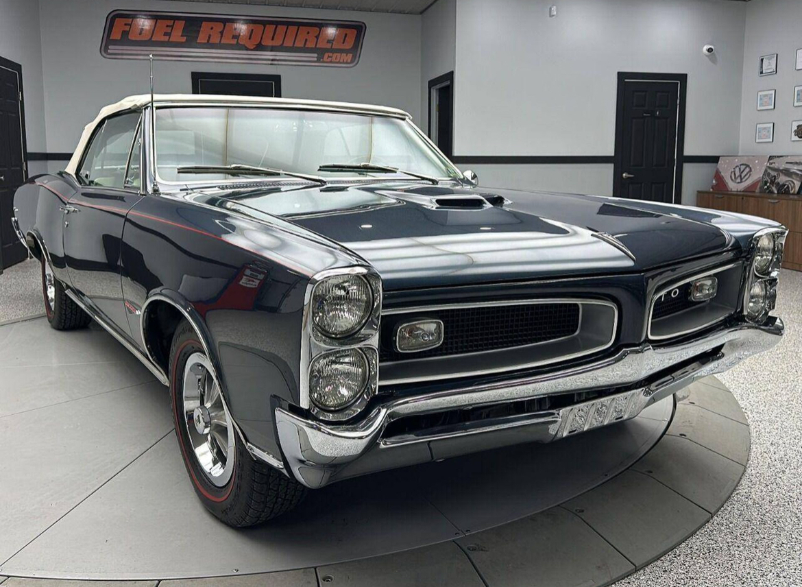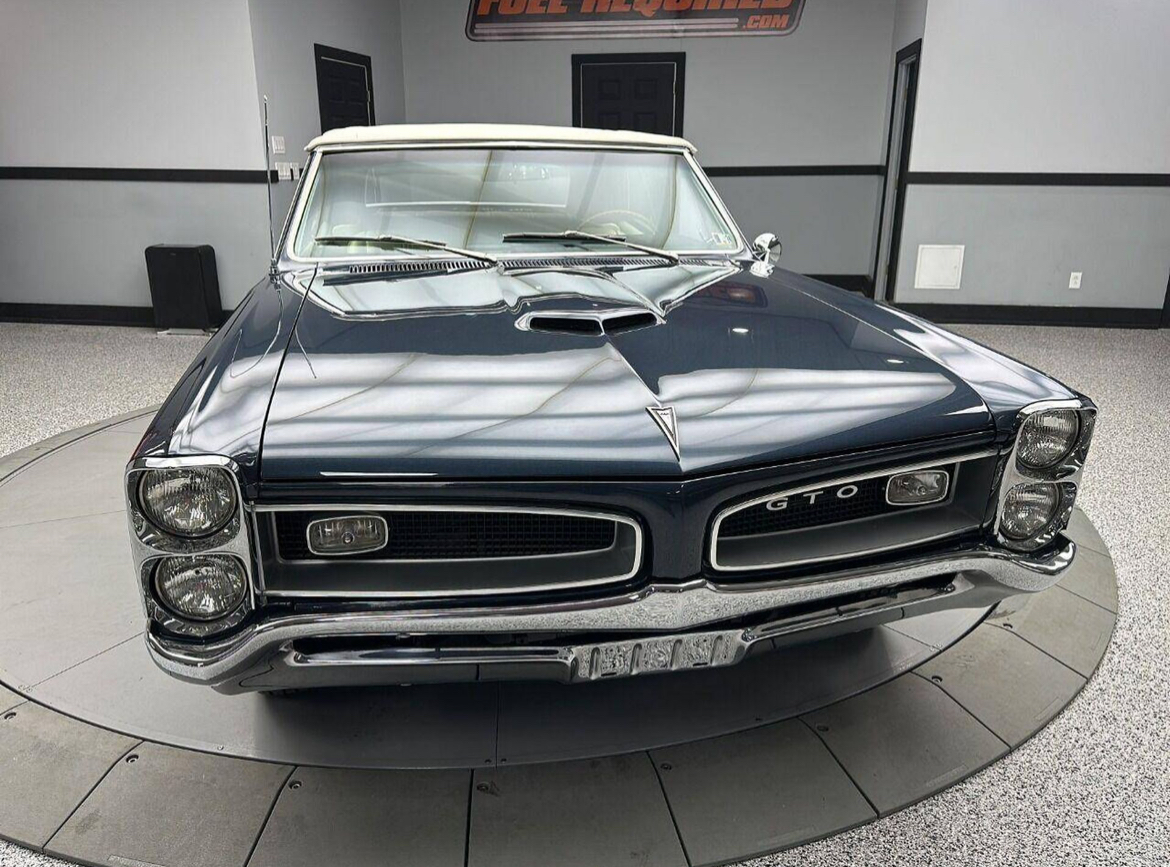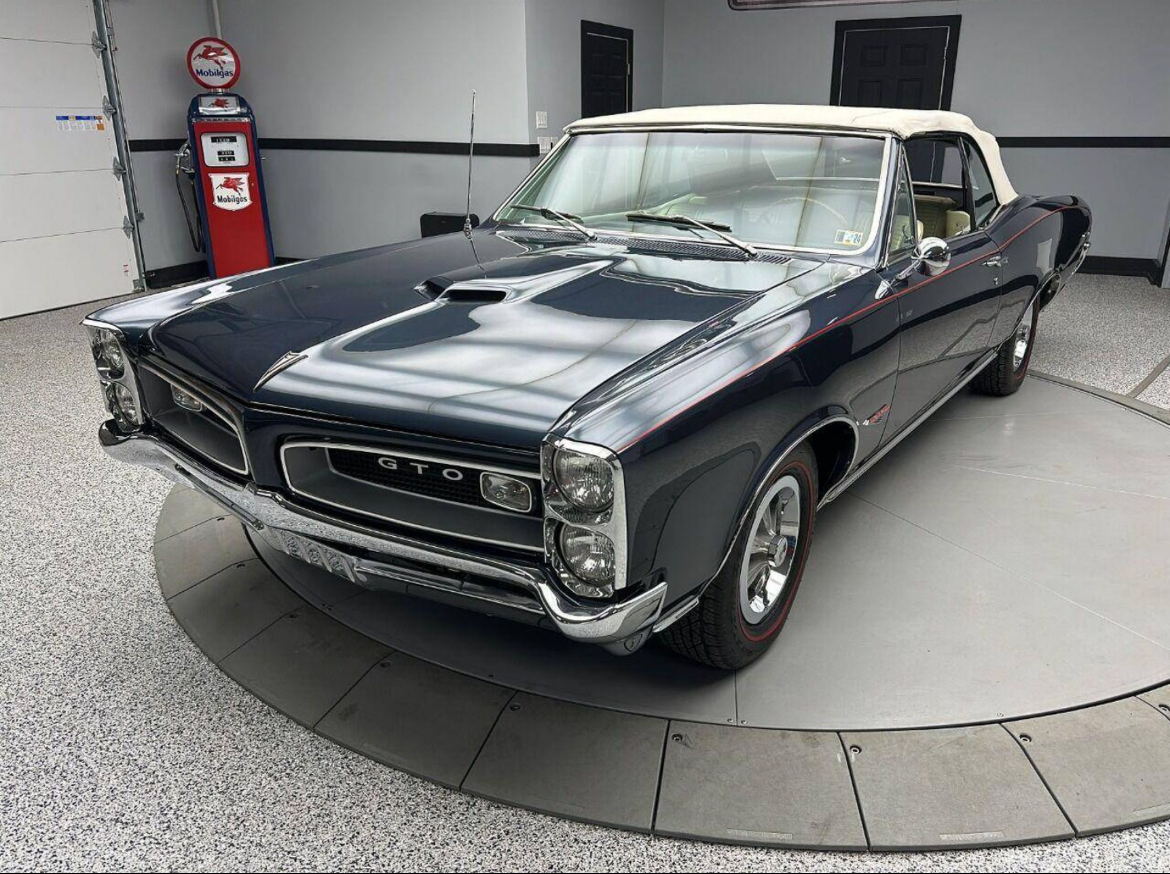 Fuel Required is pleased to present this incredible 1966 Pontiac GTO Convertible in our McDonald, PA showroom. This timeless beauty has received a rotisserie restoration and is finished in the very desirable Blue Charcoal metallic with Parchment interior. In fact, the car was painted by Bruce Harvey of Pro Comp Customs who is a two-time winner of the prestigious show car Ridler Award. The name, GTO was inspired by the Ferrari 250 GTO. The moniker is an Italian abbreviation for Gran Turismo Omologato, designating being certified by the FIA for racing in the grand tourer class as a production car. The first Pontiac GTO began production September 3, 1963, and was available as an option package for the Pontiac LeMans, available in coup?©, hardtop, and convertible body styles. The $295 package included a 389 cu in (6.4 L) V8 with a single Carter AFB four-barrel carburetor and dual exhaust pipes, chromed valve covers and air cleaner, a floor-shifted three-speed manual transmission with a Hurst shifter, stiffer springs, larger diameter front sway bar, wider wheels with 7.50 ?— 14 redline tires, hood scoops, and GTO badges. The GTO became a separate Pontiac model (# 242) in 1966, instead of being an option package on the Tempest or LeMans. The entire GM A body intermediate line was restyled that year, gaining more curvaceous styling with kicked-up rear fender lines and a longer restyled hood. This GTO also benefits from a rebuilt 389ci V8 V-8 topped by three 2-barrel carburetors, a combination rated at 360 HP and 424 lb-ft of torque all matched to a 4-speed manual transmission. It sports the Hurst shifter, power convertible top and Hurst wheels mounted to new BF Goodrich Silvertown redline tires. The odometer reads 66,366 miles. Vehicle has less than 100 miles since restoration. Heavily documented through the restoration process. This vehicle was part of a well maintained private collection. This vehicle qualifies for a complete classic vehicle warranty up to 10 years/40,000 miles. We always recommend, welcome and encourage personal or professional inspections of any vehicle in our inventory prior to purchase.