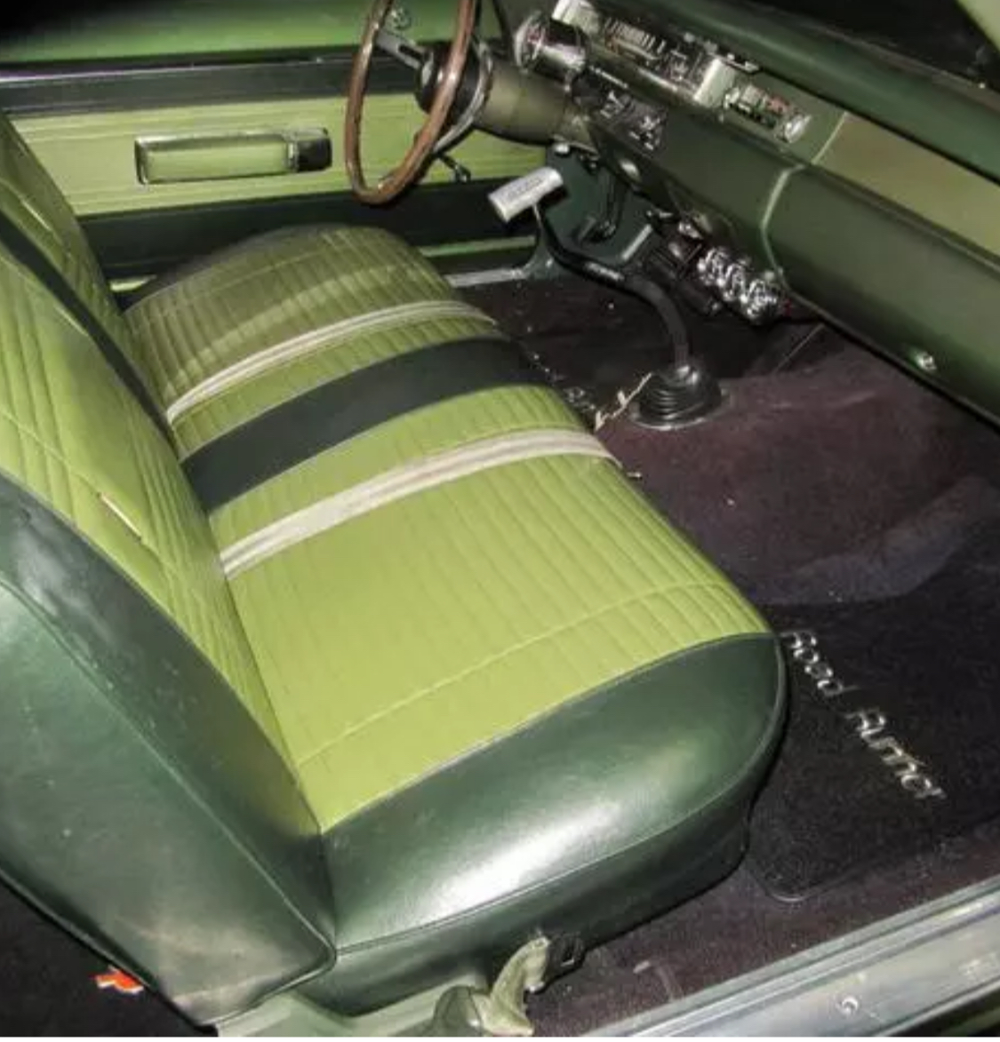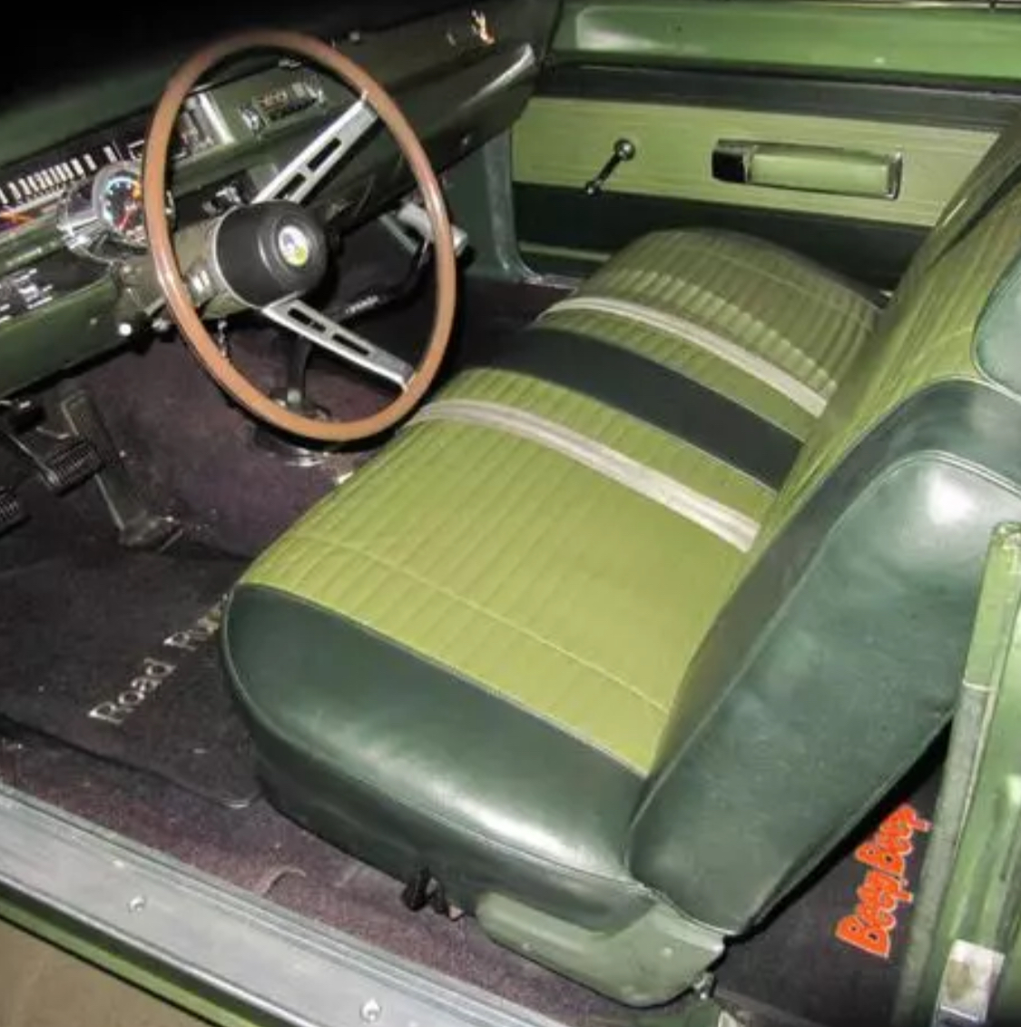 Stepping inside, you'll find a meticulously maintained interior that combines comfort with vintage charm. The black vinyl seats are in excellent condition, offering both support and style. The dashboard features the iconic Roadrunner logo and houses a range of gauges to keep you informed about the car's vital statistics. The classic steering wheel and shifter add to the nostalgic ambiance of the cabin.