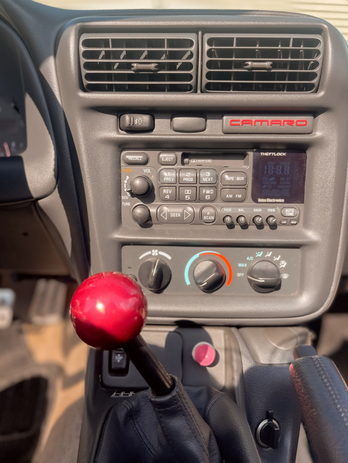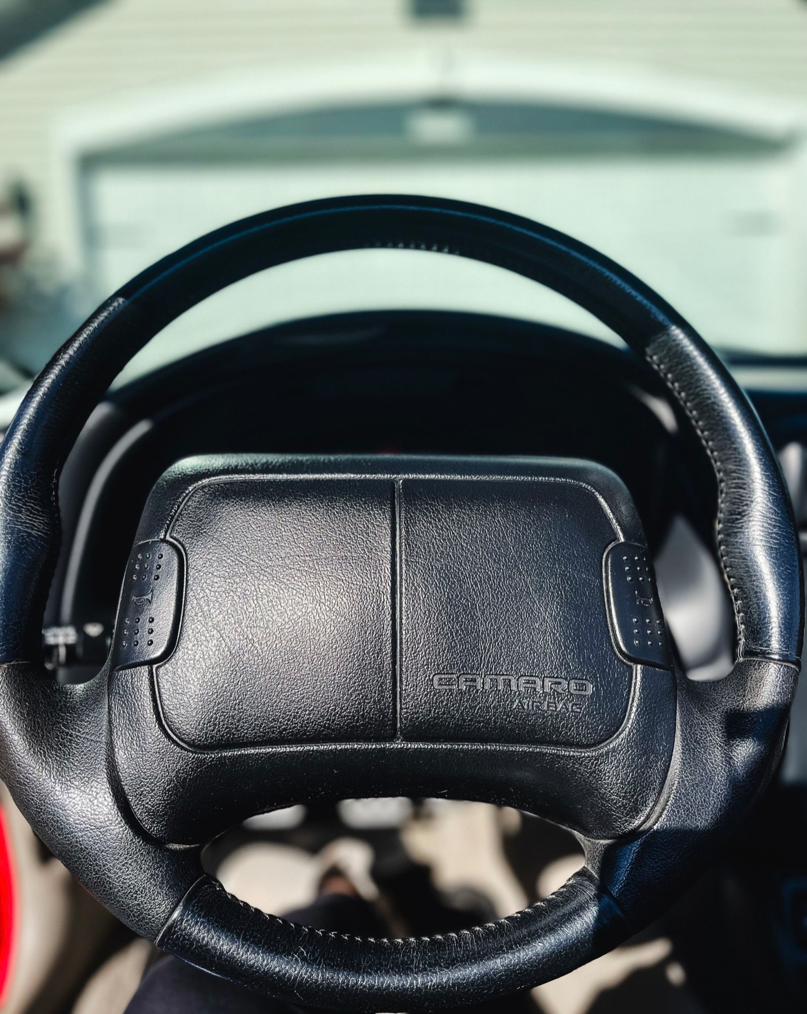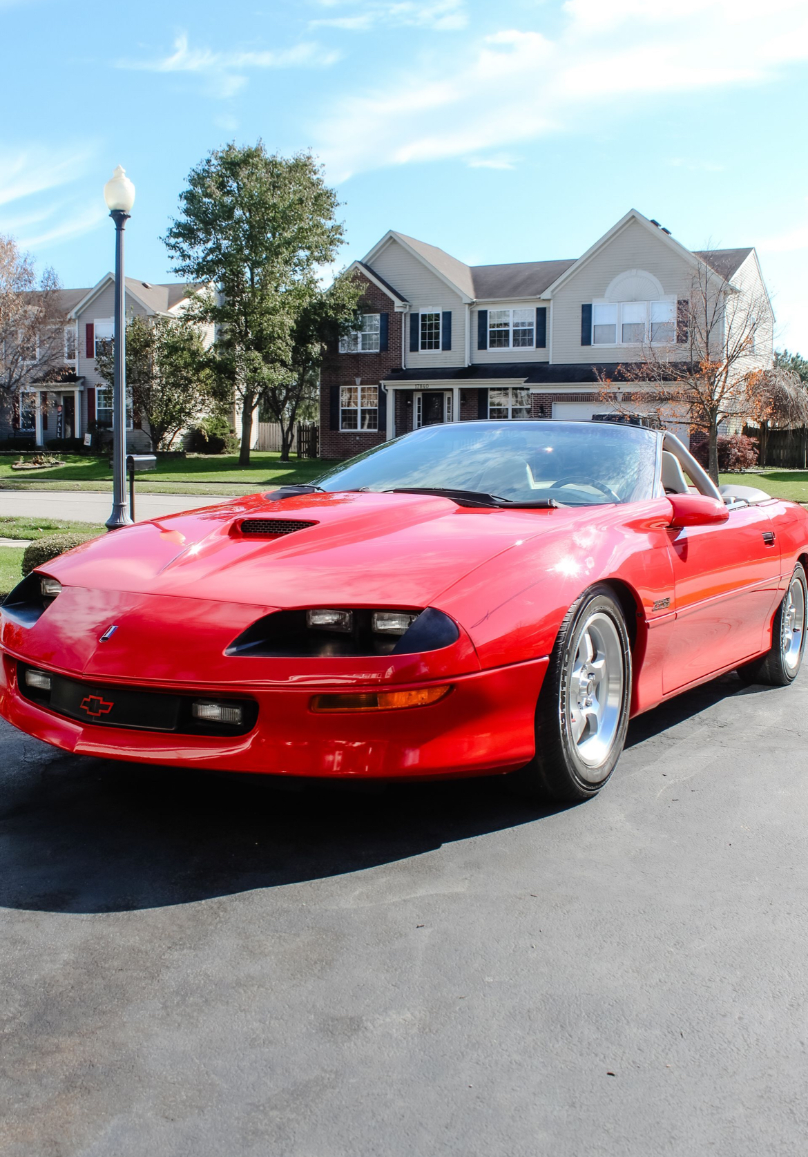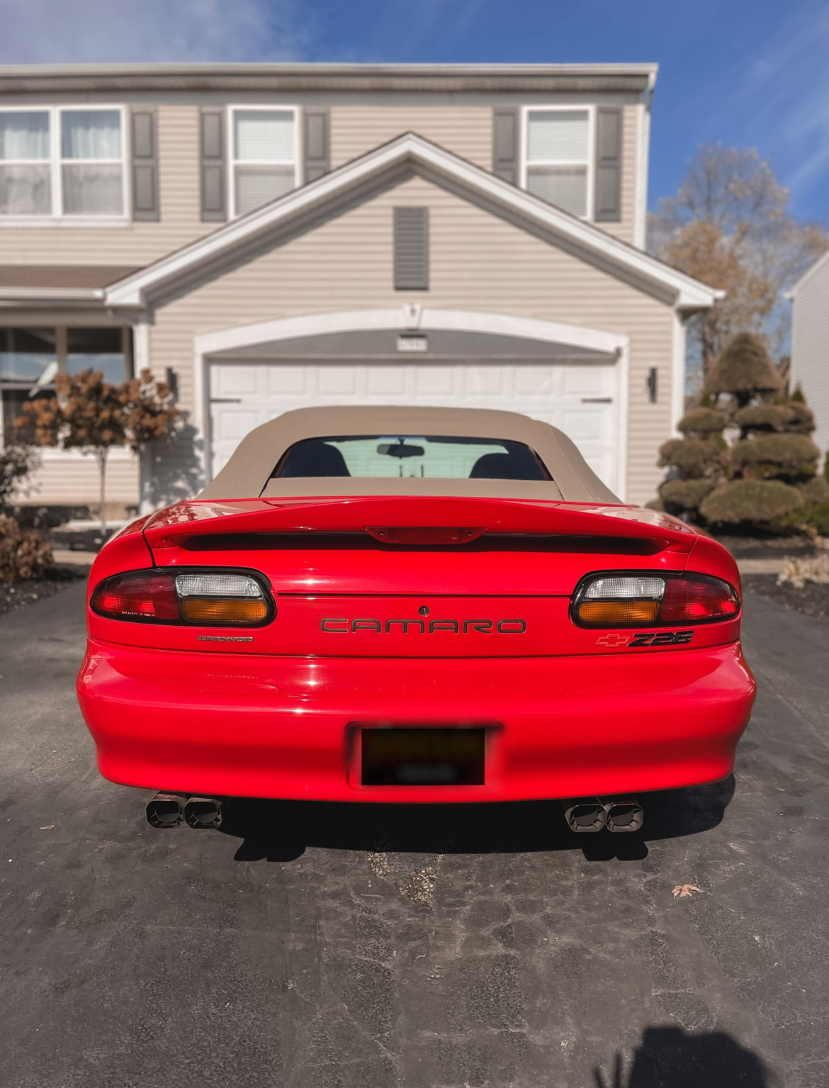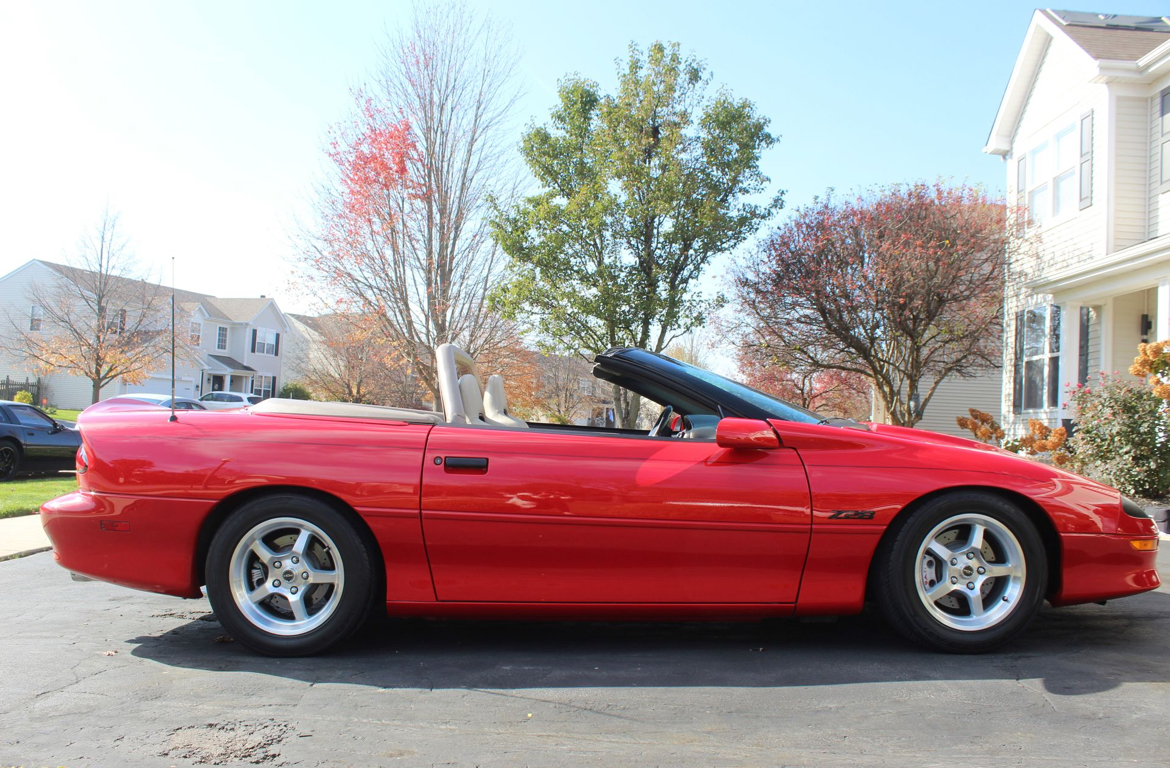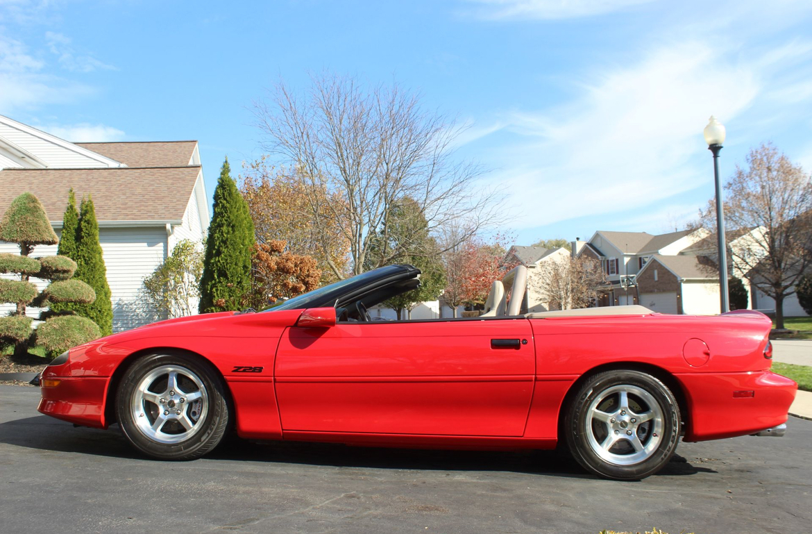 In the pre-LS1 days, the fourth-generation Z28 was powered by the LT1 5.7-liter OHV V8 and, according to the seller, this example’s output has been increased with an intercooled Powerdyne supercharger system. It’s also said to be the original engine, with no rebuild. The engine reportedly starts, idles, and runs well, with no smoke or leaks, says the seller, and it exhales through an aftermarket performance exhaust system. The engine is mated with a Tremec six-speed manual gearbox that’s shifted via a short-throw shifter, sending torque to the rear axle through a Dynotech driveshaft. The transmission reportedly shifts smoothly and has no issues.The Bright Red paintwork on this Camaro is said by the seller to be original and in “excellent” condition, with no reported dents, dings, or other significant blemishes in the finish. There’s “no rust” on the body asserts the seller. Additionally, the glass and seals are reported to be “excellent” condition, too, with no scratches or cracks in the glass and no leaks from the seals. The convertible top is said to operate very well, with no issues and no reported leaks. Exterior upgrades include a reportedly OEM SS hood and rear spoiler.