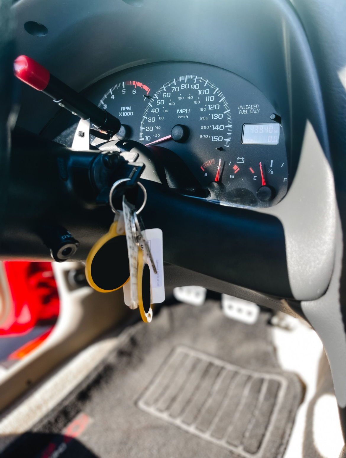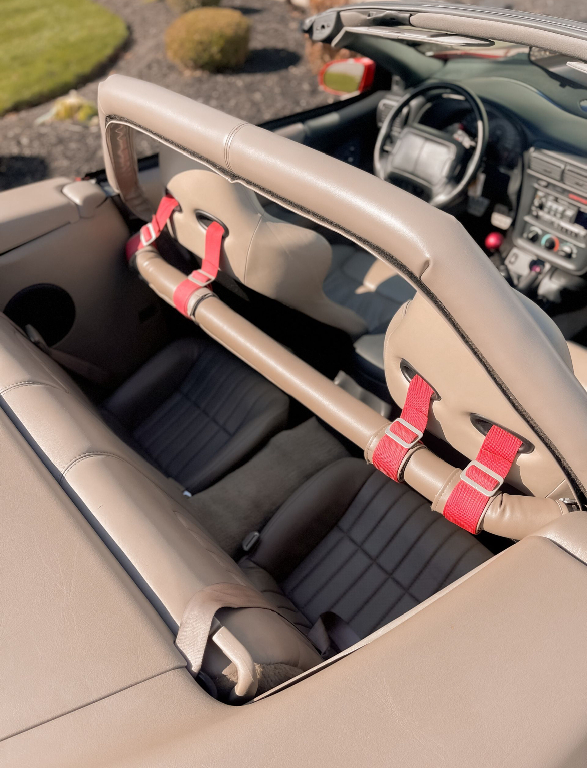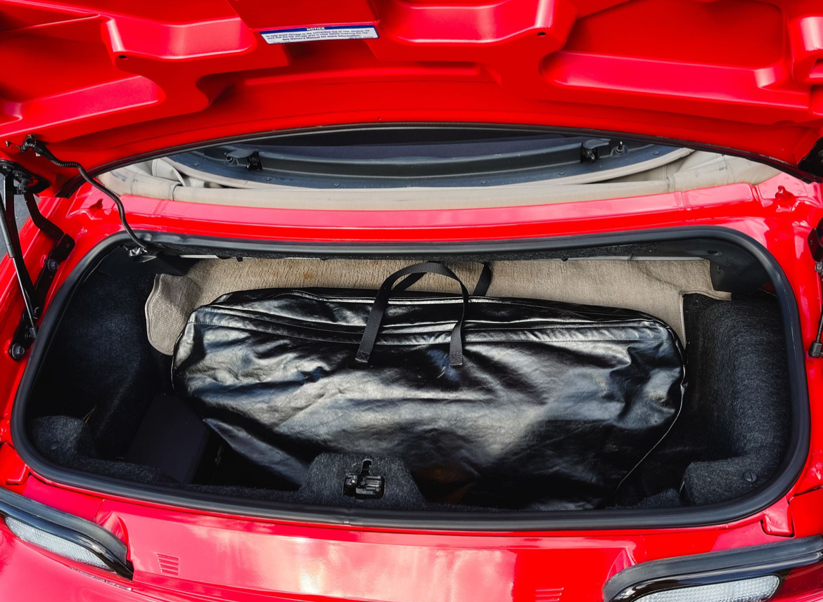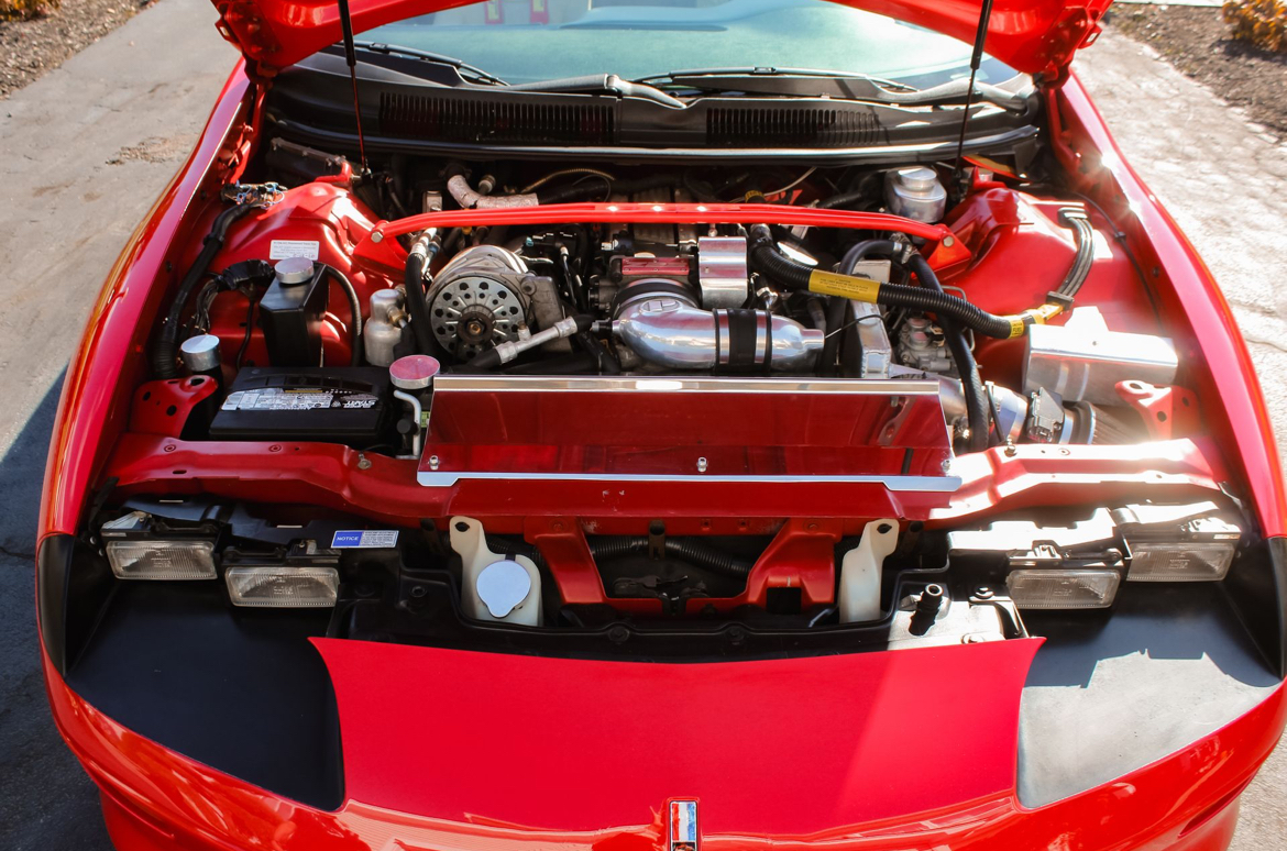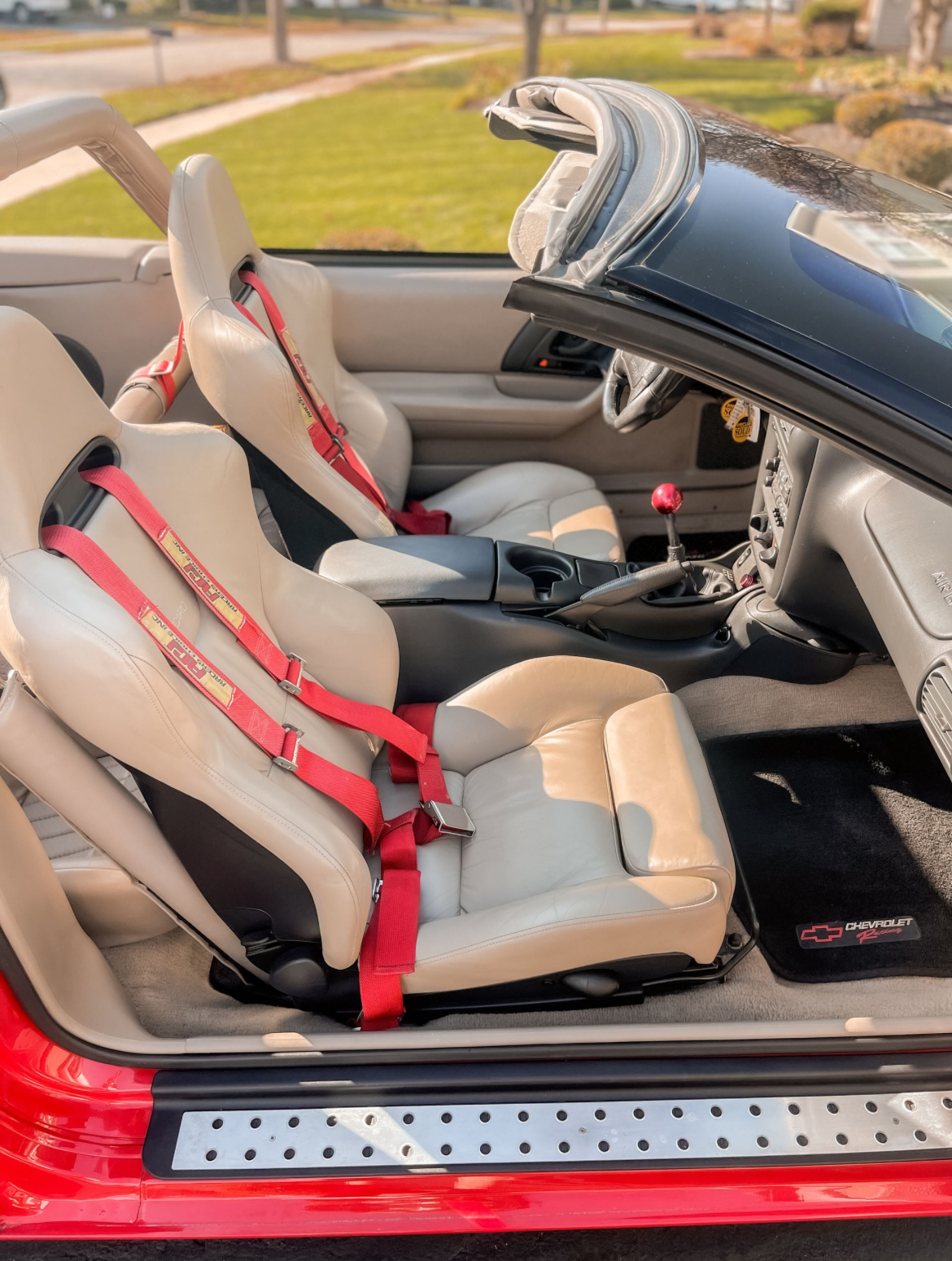 In the pre-LS1 days, the fourth-generation Z28 was powered by the LT1 5.7-liter OHV V8 and, according to the seller, this example’s output has been increased with an intercooled Powerdyne supercharger system. It’s also said to be the original engine, with no rebuild. The engine reportedly starts, idles, and runs well, with no smoke or leaks, says the seller, and it exhales through an aftermarket performance exhaust system. The engine is mated with a Tremec six-speed manual gearbox that’s shifted via a short-throw shifter, sending torque to the rear axle through a Dynotech driveshaft. The transmission reportedly shifts smoothly and has no issues.The Bright Red paintwork on this Camaro is said by the seller to be original and in “excellent” condition, with no reported dents, dings, or other significant blemishes in the finish. There’s “no rust” on the body asserts the seller. Additionally, the glass and seals are reported to be “excellent” condition, too, with no scratches or cracks in the glass and no leaks from the seals. The convertible top is said to operate very well, with no issues and no reported leaks. Exterior upgrades include a reportedly OEM SS hood and rear spoiler.