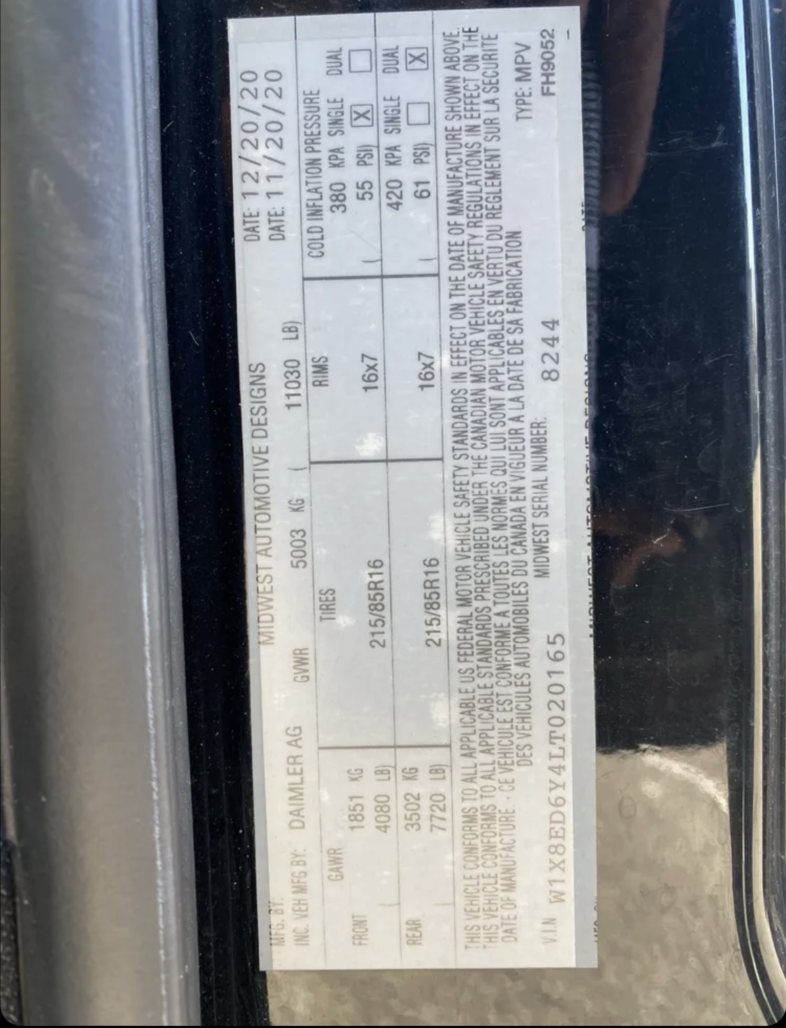 | VIN | W1X8ED6Y4LT020165 |