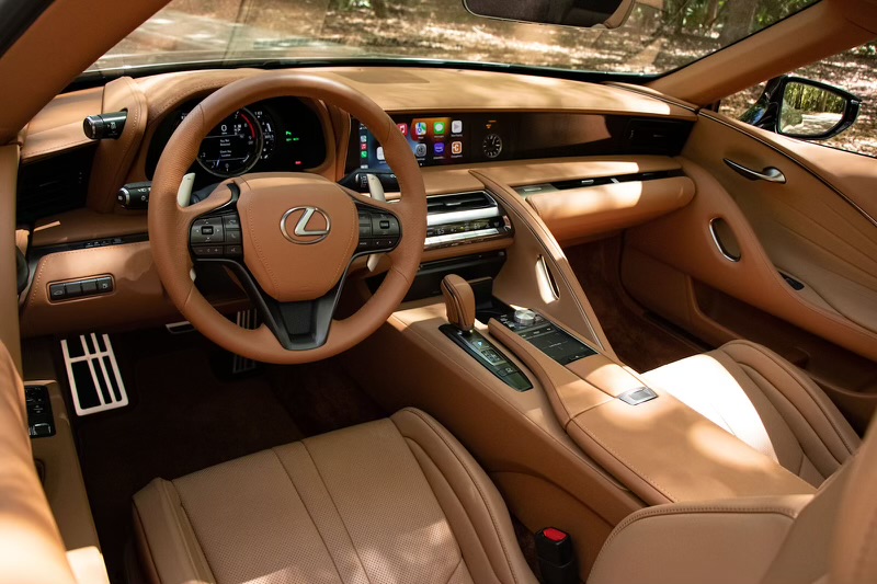 4. Luxurious Interior: Step inside the LC 500 Convertible, and you'll be greeted by a meticulously crafted interior that blends opulence with modern technology. From the plush leather seats to the high-quality materials and attention to detail, the cabin exudes a sense of luxury and refinement.